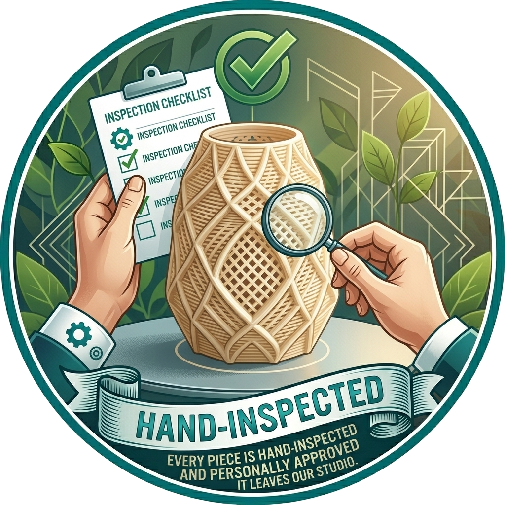 Every piece is hand-inspected and personally approved before it leaves our studio